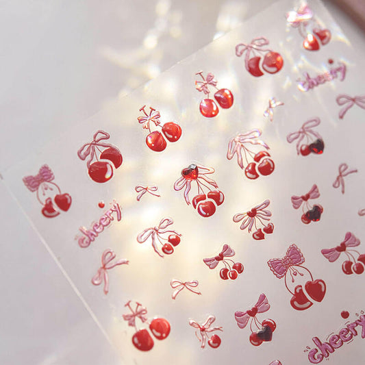 Cherry Nail Stickers, Cherry Nail Decals, Cute Fruit Nail Stickers, Red Cherry Nails, DIY Nails, 3D Nail Stickers, Bowknot Nail Stickers